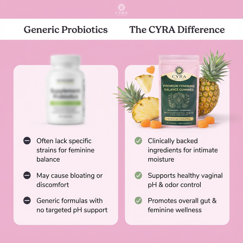 Our blend combines clinically studied probiotics with targeted botanicals to promote vaginal balance and hydration from within. By supporting a healthy pH environment and natural moisture, these gummies address the root of intimate health, offering you a gentle yet effective way to feel confident and comfortable.